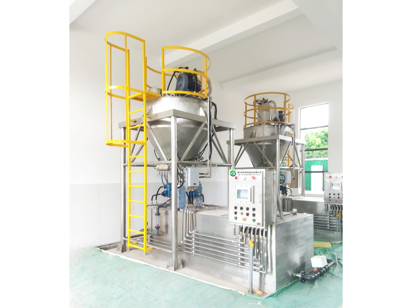 高錳酸鉀投加裝置高錳酸鉀是水處理工藝中常用的強(qiáng)氧化劑,用于去除水中鐵錳等重金屬離子及各種有機(jī)污染物,在自來水廠原水處理應(yīng)用廣泛。根據(jù)高猛酸鉀的特性,設(shè)計采用真空吸料進(jìn)料、防堵塞裝置、熱加防潮、預(yù)潤濕裝置,提高了設(shè)備運(yùn)行的穩(wěn)定性。產(chǎn)品組成高猛酸鉀投加系統(tǒng)是一種將高錳酸鉀粉末與水按一定濃縮配制后,投加至投加點(diǎn)的全自動成套投加設(shè)備。工藝流程通過真空上料機(jī)將高錳酸鉀干粉送至料倉中,料倉中設(shè)有防堵塞和防搭橋裝置,給料機(jī)將干粉均勻通過預(yù)潤濕裝置進(jìn)入溶解箱中與水溶解攪拌;制備后溶劑投加至投加點(diǎn)。選型配置表